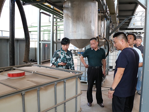 督查小組根據(jù)項目沙盤,聽取了關(guān)于我公司餐廚廢棄物資源化利用項目的建設(shè)情況,并實地參觀餐廚廢棄物處置車間,詳細了解了我公司對餐廚廢棄物的處理能力與運營現(xiàn)狀。