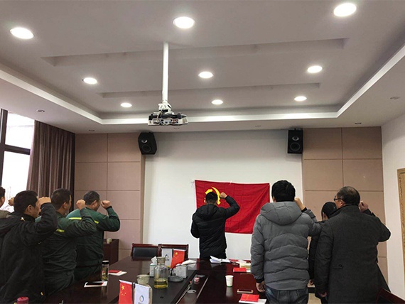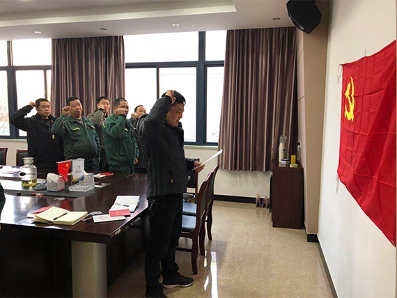為及時準(zhǔn)確把握黨的十九大精神,勉勵廣大黨員不忘初心,牢記使命,不斷提振精神狀態(tài),12月20日,綠洲環(huán)保黨支部書記周順康,為全體黨員干部作了題為《學(xué)習(xí)貫徹落實黨的十九大精神》的集中黨課,幫助廣大黨員深刻領(lǐng)會習(xí)近平新時代中國特色社會主義思想的歷史地位和豐富內(nèi)涵。會議上,黨支部志愿隊隊長余利鋒同志帶領(lǐng)大家面對黨旗宣誓: